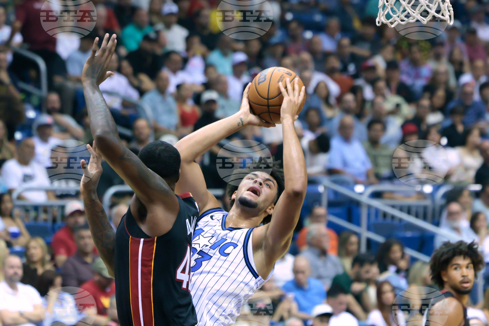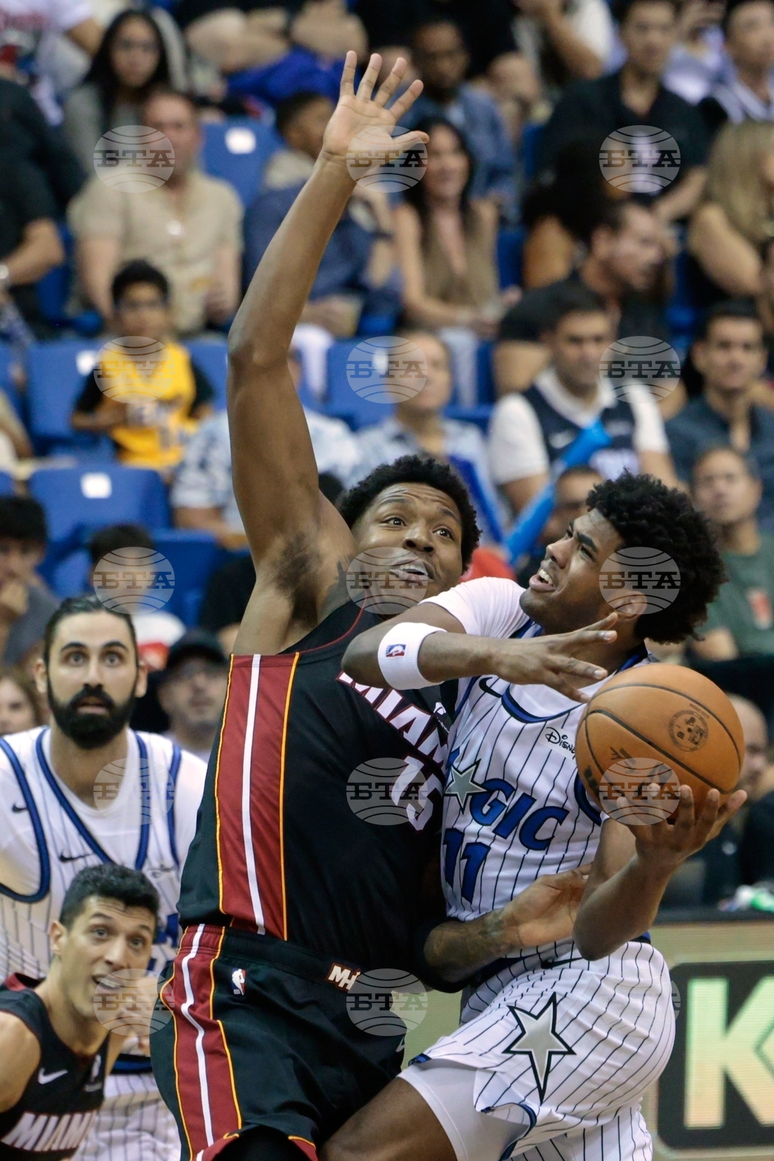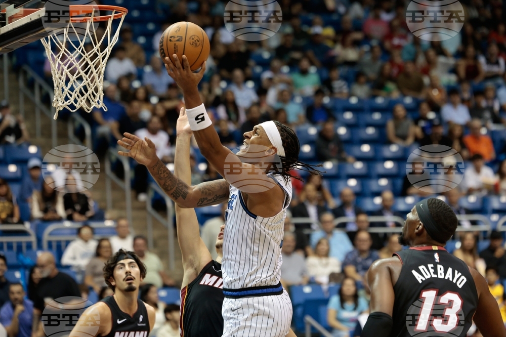 The Miami Heat play the Orlando Magic during the second half of a preseason NBA basketball game in San Juan, Puerto Rico, Saturday, Oct. 4, 2025. (AP Photo/Alejandro Granadillo)
