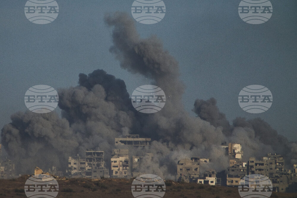 Smoke billows over Gaza Strip following an Israeli bombardment, as seen from southern Israell, Sunday, Oct. 5, 2025. (AP Photo/Ariel Schalit)