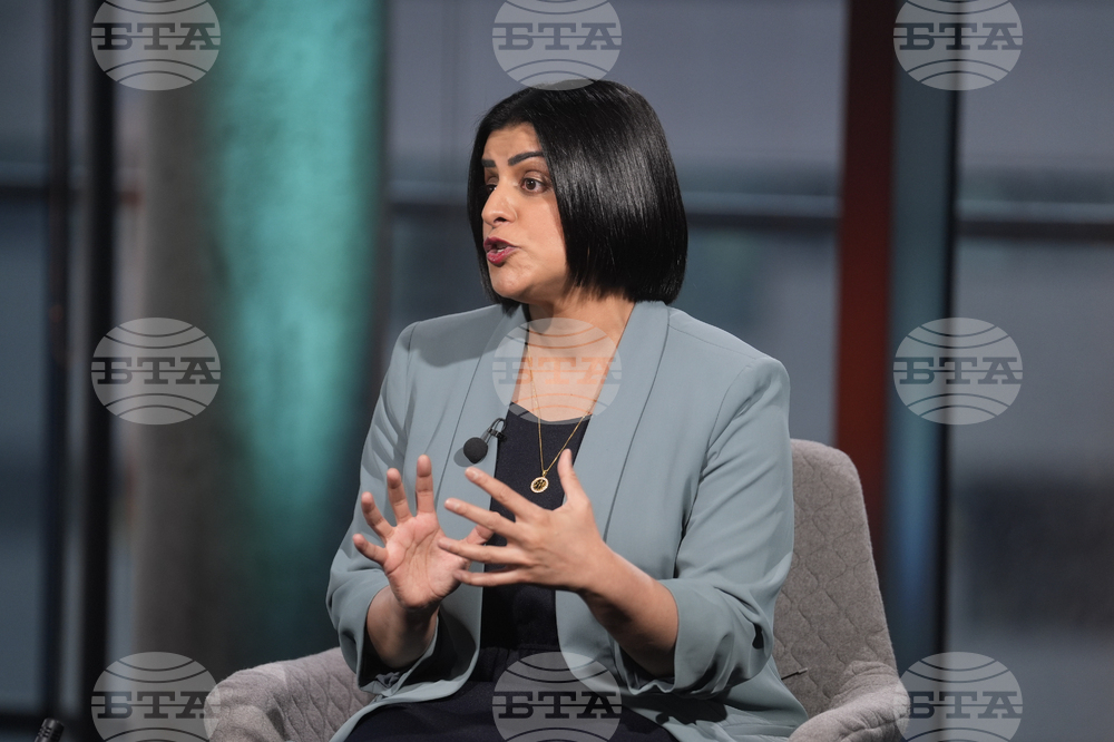 Britain's Home Secretary Shabana Mahmood speaks during an appearance on the BBC One current affairs programme, Sunday with Laura Kuenssberg at Media City, in Salford, England, Sunday, Oct. 5, 2025. (Danny Lawson/Pool Photo via AP)