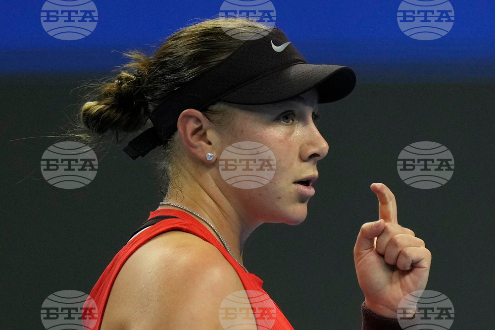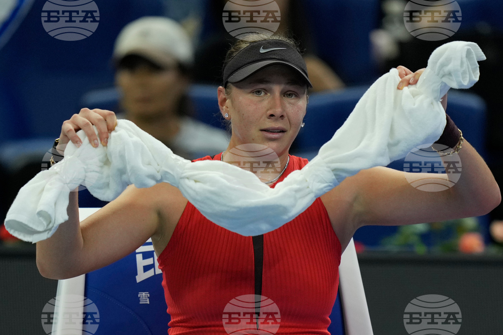 Amanda Anisimova of the United States reacts during play against Linda Noskova of the Czech Republic in the women's singles final match of the China Open tennis tournament in Beijing, China, Sunday, Oct. 5, 2025.(AP Photo/Ng Han Guan)