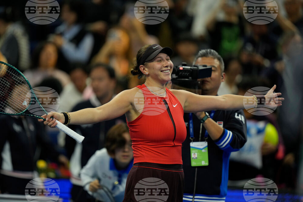 Amanda Anisimova of the United States autographs for fans after defeating Linda Noskova of the Czech Republic in the women's singles final match of the China Open tennis tournament in Beijing, China, Sunday, Oct. 5, 2025.(AP Photo/Ng Han Guan)