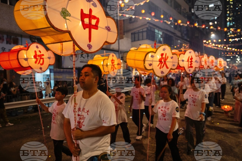 Participants hold lanterns during the Tai Hang Fire Dragon Dance performance to celebrate the Mid-Autumn Festival in Hong Kong, Sunday, Oct. 5, 2025. (AP Photo/Chan Long Hei)