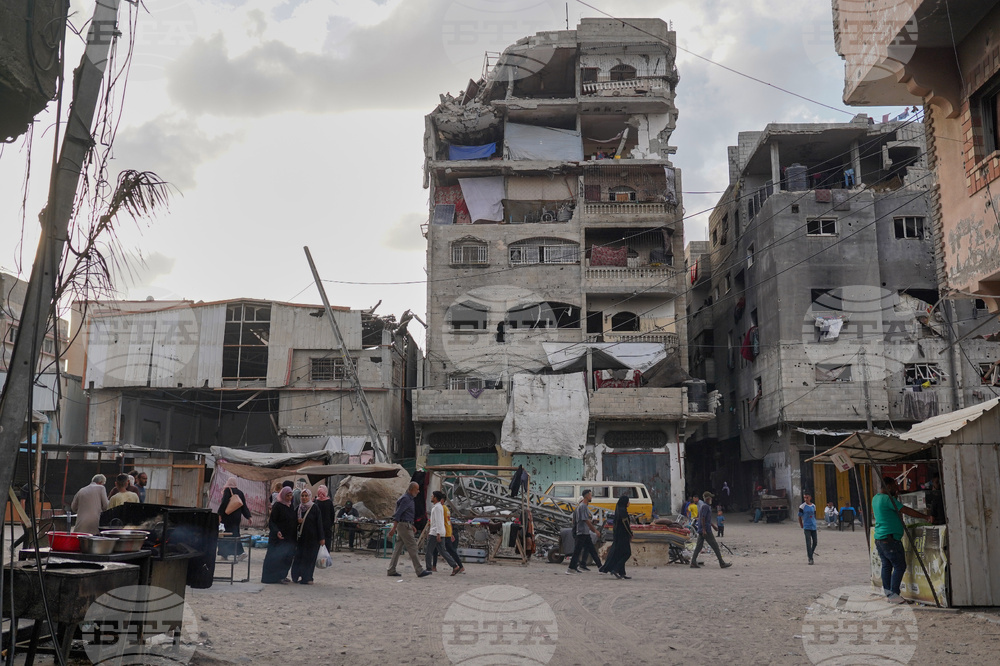 Palestinians walk through the streets of Khan Younis in the southern Gaza Strip, Sunday, Oct. 5, 2025. (AP Photo/Jehad Alshrafi)