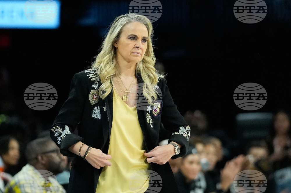 Las Vegas Aces head coach Becky Hammon looks on during the second half in Game 2 of the WNBA basketball finals against the Phoenix Mercury, Sunday, Oct. 5, 2025, in Las Vegas. (AP Photo/John Locher)