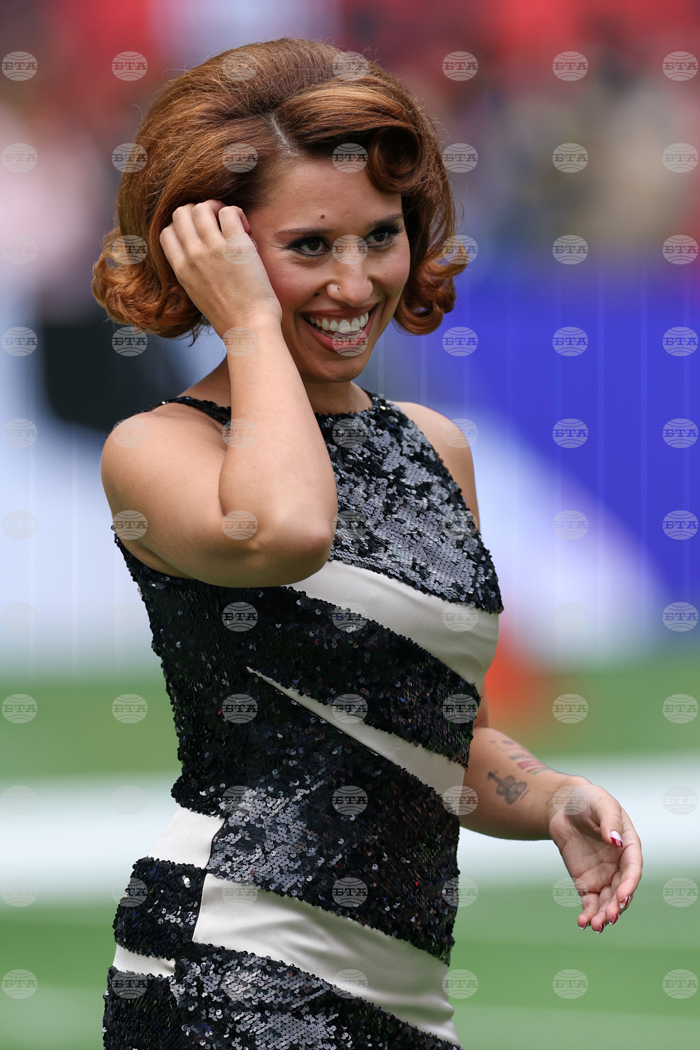 Singer, Raye arrives to perform at half-time during the NFL game between Minnesota Vikings and Cleveland Browns at the Tottenham Hotspur stadium in London, Sunday, Oct. 5, 2025. (AP Photo/Ian Walton)