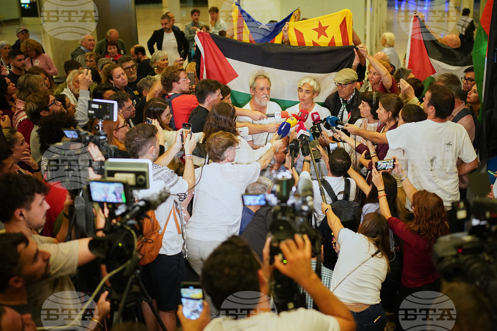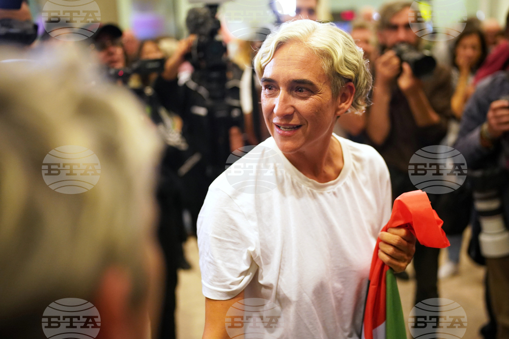 Former Barcelona mayor Ada Colau arrives at the airport in Barcelona, Spain, Sunday, Oct. 5, 2025 after being arrested on the Global Sumud Flotilla and subsequently released by the Israeli authorities. (AP Photo/Joan Mateu Parra)