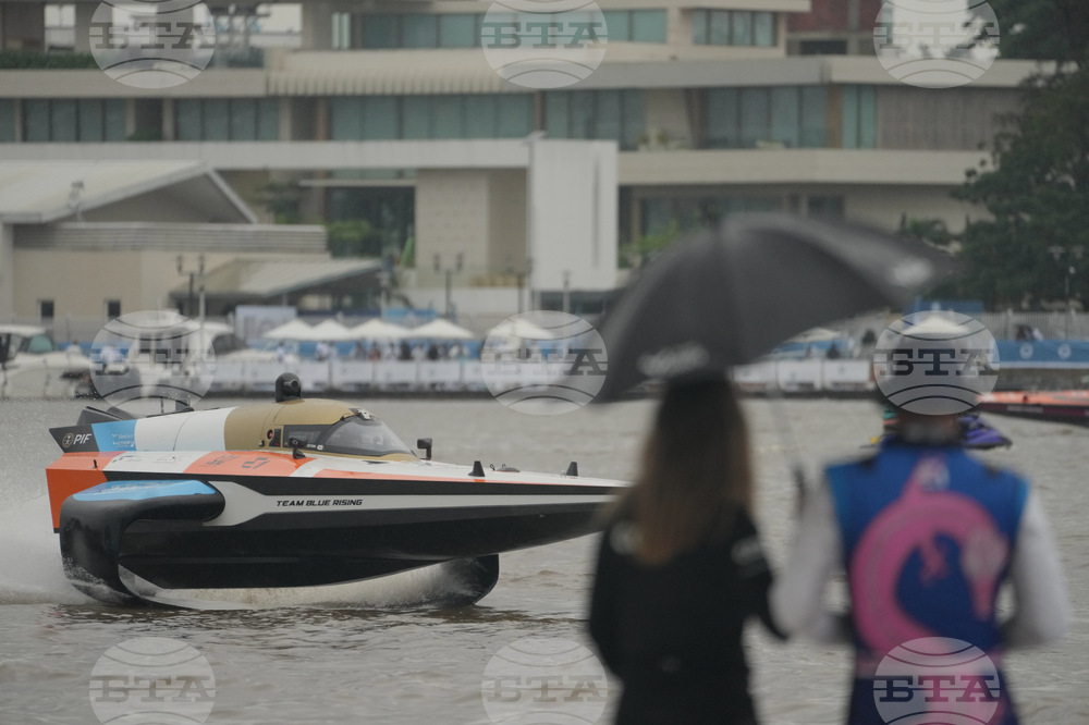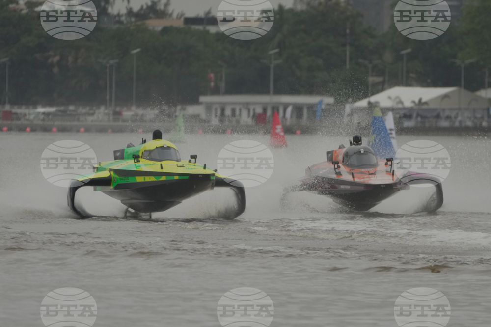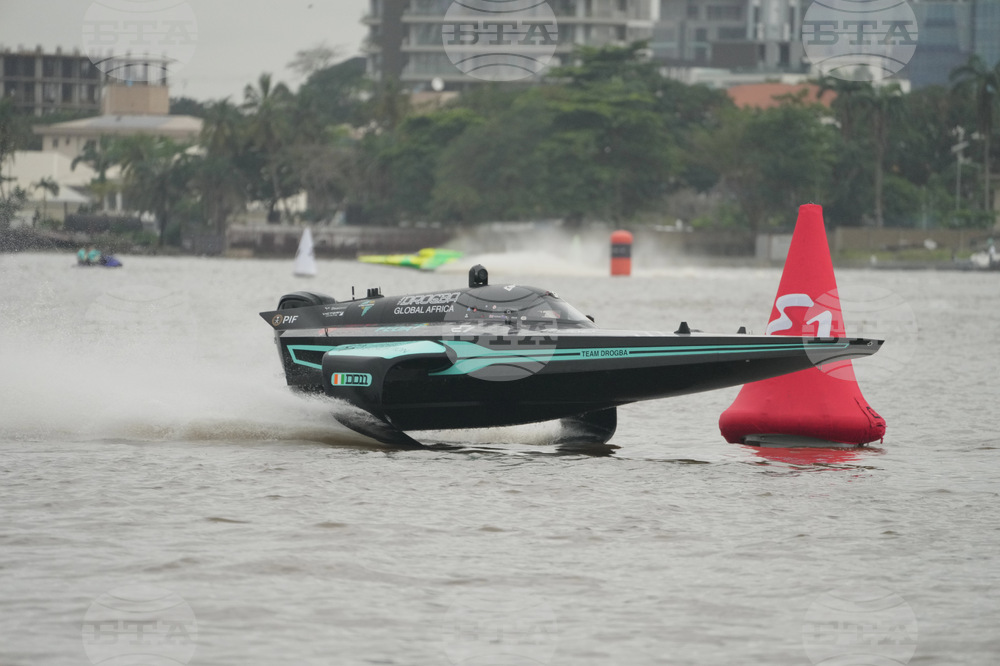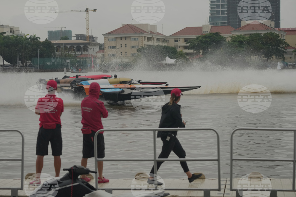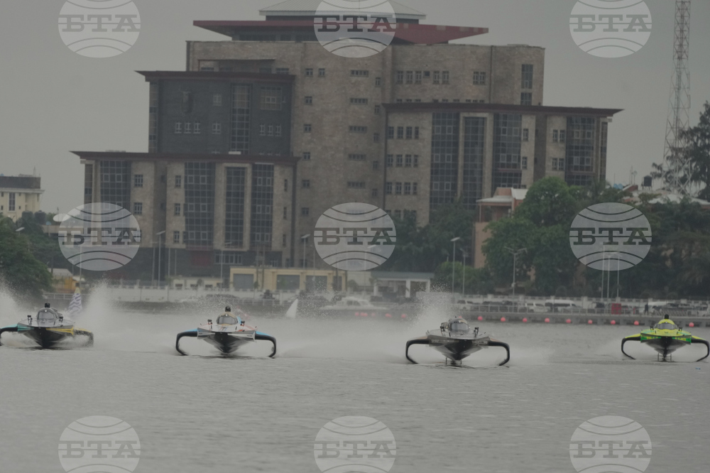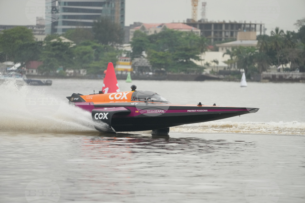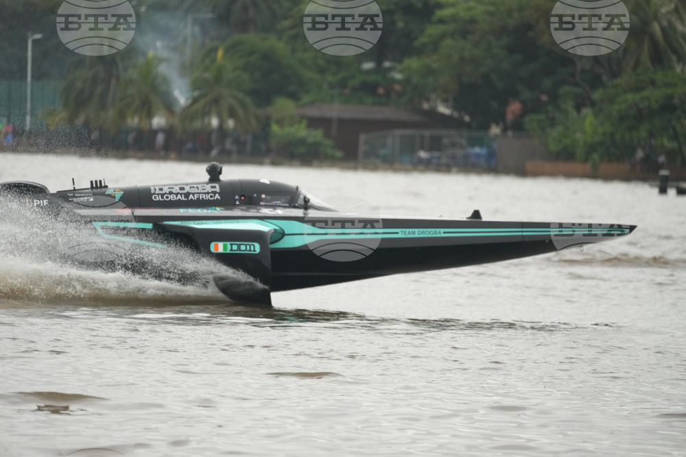 People competes during the E1 powerboat Grand Prix Championship race in Lagos, Nigeria, Sunday, Oct. 5, 2025. (AP Photo/Sunday Alamba)