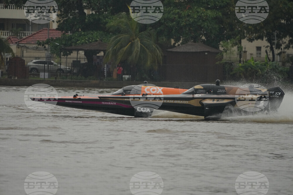 Team Brady, competes during the E1 powerboat Grand Prix Championship race in Lagos, Nigeria, Sunday, Oct. 5, 2025. (AP Photo/Sunday Alamba)