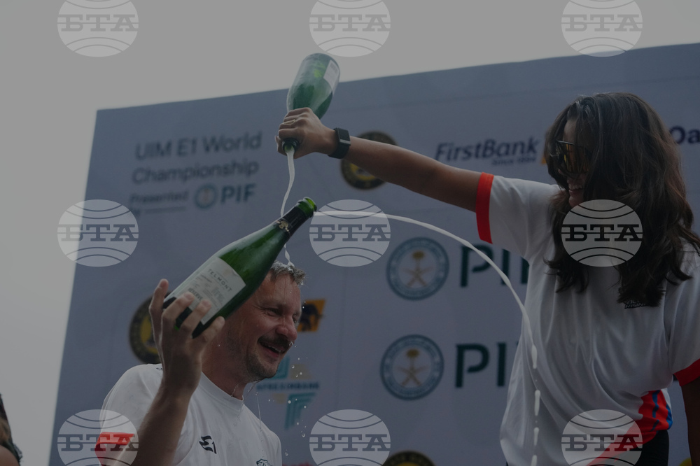 Team Brazil, celebrates after winning the E1 powerboat Grand Prix Championship race in Lagos, Nigeria, Sunday, Oct. 5, 2025. (AP Photo/Sunday Alamba)