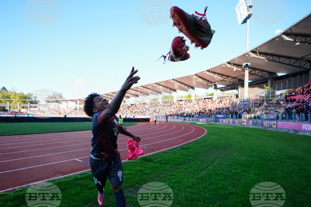 New Caledonia's Nolhann Alebate throws his shoes to spectators after a FIFA U-20 World Cup Group F soccer match against France at Fiscal Stadium in Talca, Chile, Sunday, Oct. 5, 2025. (AP Photo/Matias Delacroix)