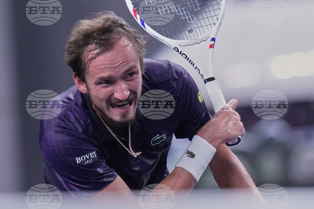 Russia's Daniil Medvedev returns a backhand shot from Alejandro Davidovich Fokina of Spain during the men's singles match of the Shanghai Masters tennis tournament at Qizhong Forest Sports City Tennis Center, in Shanghai, China, Monday, Oct. 6, 2025. (AP Photo/Andy Wong)