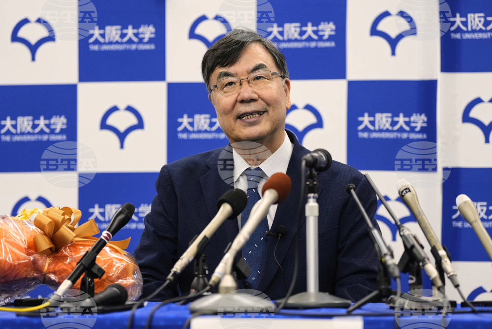Osaka University professor Dr. Shimon Sakaguchi holds a news conference in Suita, near Osaka, western Japan, Monday, Oct. 6, 2025, after he won the Nobel Prize in medicine. (Shohei Miyano/Kyodo News via AP)