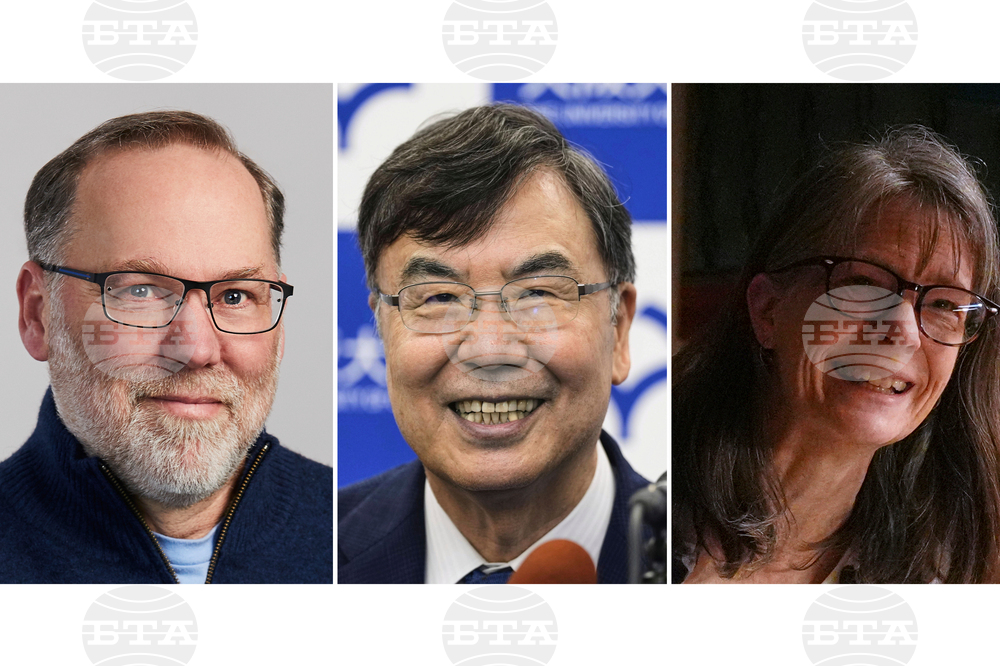 This photo combination shows, from left, Fred Ramsdell in a photo provided by Sonoma Biotherapeutics, Osaka University professor Dr. Shimon Sakaguchi, in Suita, near Osaka, western Japan, Oct. 6, 2025 and Mary E. Brunkow in Seattle, Oct. 6, 2025. (Sonoma Biotherapeutics/Shohei Miyano/Kyodo News, Lindsey Wasson via AP)