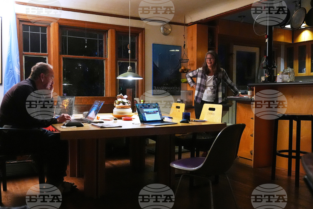 Mary E. Brunkow and her husband Ross Colquhoun talk with one of their daughters on the phone about her winning a Nobel Prize in medicine for part of her work on peripheral immune tolerance, in Seattle, Monday, Oct. 6, 2025. (AP Photo/Lindsey Wasson)