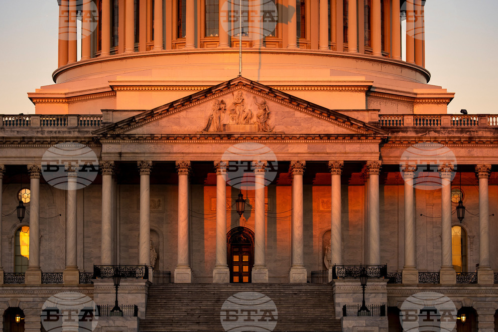 The Senate side of the Capitol is illuminated by the sun at dawn in Washington, Monday, Oct. 6, 2025. (AP Photo/J. Scott Applewhite)
