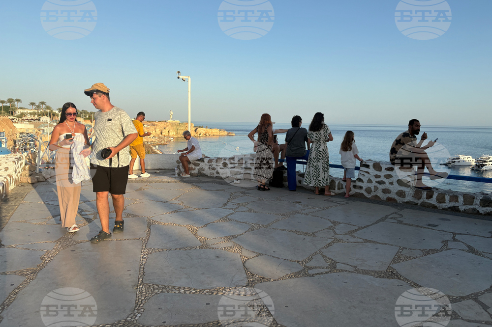 Holiday makers visit the Red Sea city of Sharm el-Sheikh, Egypt, where Israeli and Hamas officials are set to hold indirect talks, Monday, Oct. 6, 2025. (AP Photo)