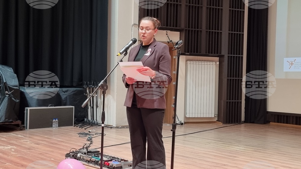 Враца (6 октомври 2025) Във Враца тази вечер беше открита кампанията „Розов октомври“, посветен на международния месец за борба с рака на гърдата. Кампанията се провежда съвместно между Община Враца, КОЦ Враца, МБАЛ „Сърце и мозък“ Плевен, с подкрепата на на Българското дружество за борба с рака на гърдата и клуба на жените мотористи Lady Bikers MPowered Bulgaria. Преди официалното откриване бяха пуснати розови балони в небето над Враца, а след това концерт изнесе Михаела Маринова. На снимката: заместник-кметът на Враца Вероника Ценова.