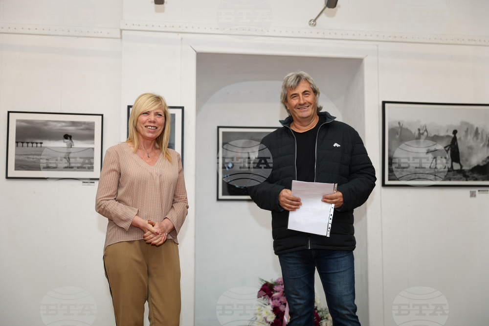 Бургас (6 октомври 2025) За 17-та година Сдружение Бургаска фотографска общност (БФО) представя годишната си изложба с фотографии. Експозицията включва над 50 произведения от различни жанрове на фотографското изкуство. Откриването се провежда в изложбената зала на Дружество на бургаските художници, а творбите ще остават в галерията до 18 октомври. В изложбата участват авторите: Александр Кулик, Александр Стоянов, Атанас Стоянов, Венелин Тодоров, Георги Иванов, Данаил Димов, Димитрина Андреева, Драгомир Георгиев, Жечо Планински, Константин Костадинов, Красимир Колев, Маргарита Кирова, Милен Добрев, Николай Раданов-Ниро, Светлин Йосифов, Станил Лазаров, Стефка Делчева и Христо Стефанов. На снимката: зам.-кметът по Култура и вероизповедания на Община Бургас Диана Саватева и председателят на БФО Пламен Русев.