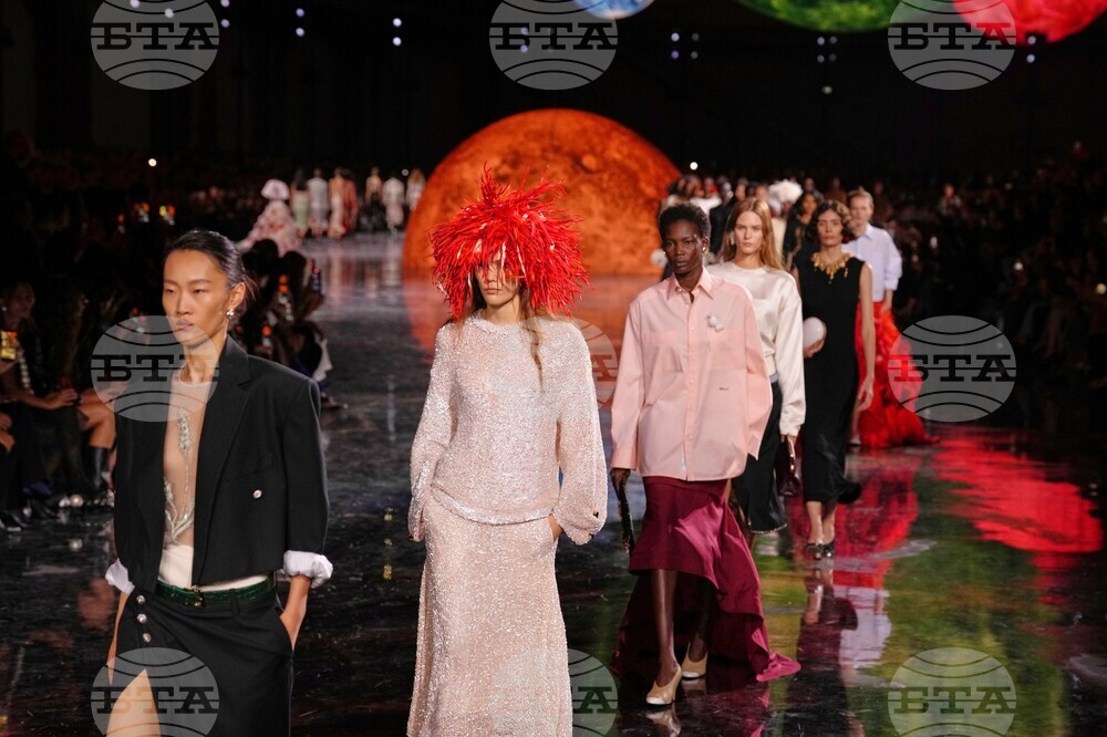 Designer Matthieu Blazy accepts applause after the Chanel Spring/Summer 2026 collection presented in Paris, Monday, Oct. 6, 2025. (AP Photo/Aurelien Morissard)
