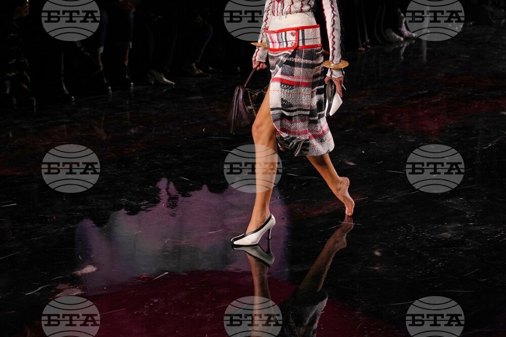 Models wear creations as part of the Chanel Spring/Summer 2026 collection presented in Paris, Monday, Oct. 6, 2025. (AP Photo/Aurelien Morissard)