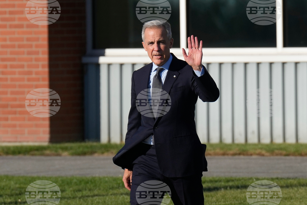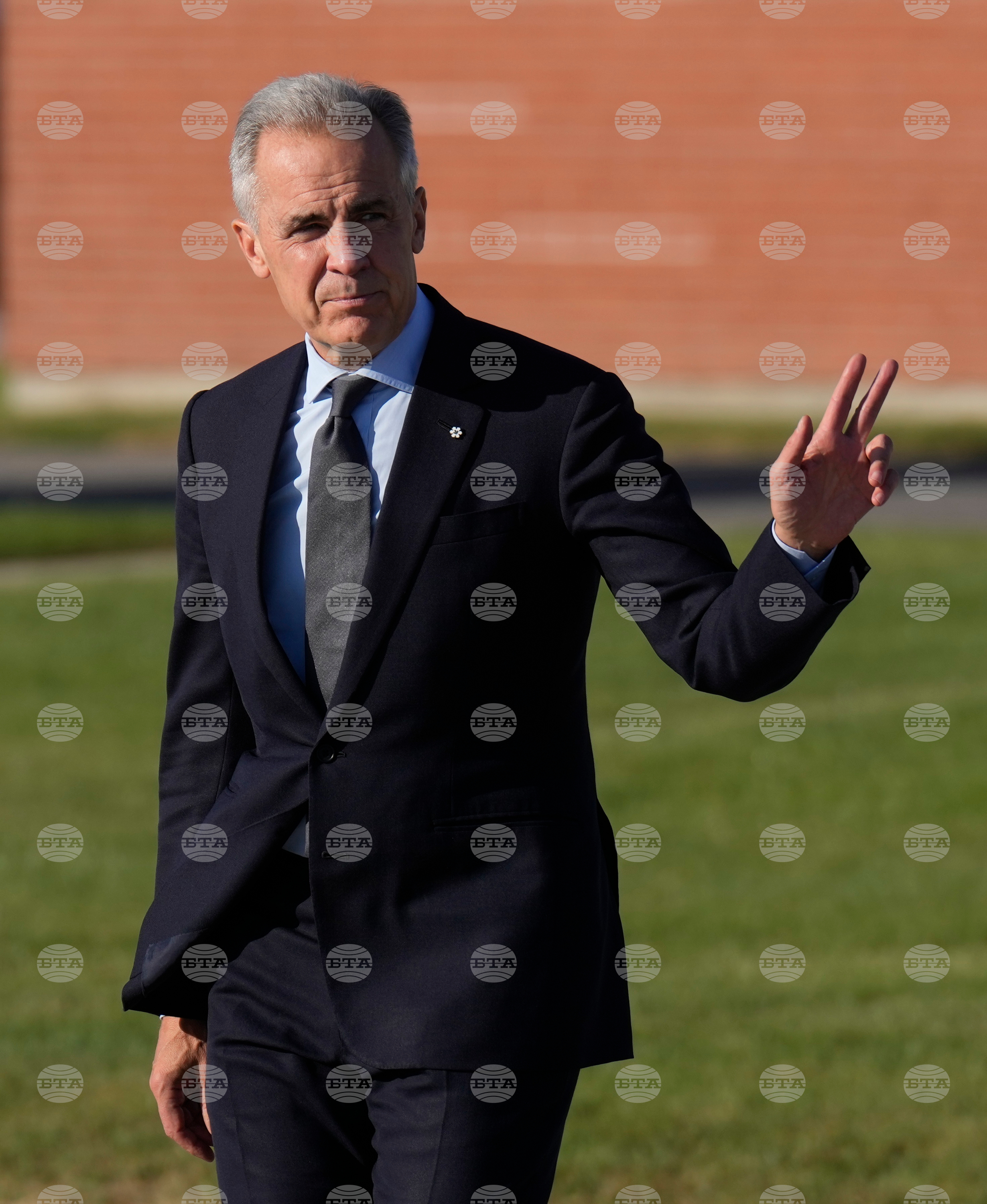 Canada Prime Minister Mark Carney walks to a government plane in Ottawa, Ontario, Monday Oct. 6, 2025. (Adrian Wyld/The Canadian Press via AP)