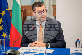 Габрово (7 октомври 2025) В Габрово започна регионална дискусия, част от националната информационна кампания на Министерството на финансите и Българската народна банка за въвеждане на еврото в България. На снимката (от ляво надясно): заместник-министърът на финансите Методи Методиев, Пламен Константинов, Министерство на финансите, Цветислава Лакова, член на КЗП, зам.-директорът на Териториална дирекция на НАП - Велико Търново Лиляна Живкова, директорът на Териториално поделение на Национален осигурителен институт - Габрово, Даниела Стоева-Петкова, икономическият анализатор към Конфедерацията на независимите синдикати в България Петър Мишев, регионалният директор в УниКредит Булбанк - Русе Венелин Атанасов, Асоциация на банките в България, главният експерт в Комисията за финансов надзор Антоанета Маринова и главният изпълнителен директор на Пенсионно осигурително дружество Алианц България Владислав Русев.