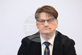 Габрово (7 октомври 2025) В Габрово започна регионална дискусия, част от националната информационна кампания на Министерството на финансите и Българската народна банка за въвеждане на еврото в България. На снимката: вицепремиерът и министър на иновациите и растежа Томислав Дончев.