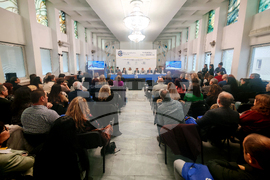 Габрово (7 октомври 2025) В Габрово започна регионална дискусия, част от националната информационна кампания на Министерството на финансите и Българската народна банка за въвеждане на еврото в България. На снимката: министърът на културата Мариан Бачев.