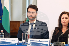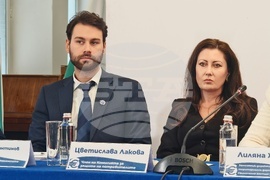 Габрово (7 октомври 2025) В Габрово започна регионална дискусия, част от националната информационна кампания на Министерството на финансите и Българската народна банка за въвеждане на еврото в България. На снимката (от ляво надясно): Пламен Константинов, Министерство на финансите и Цветислава Лакова, член на КЗП.
