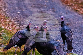 A rafter of wild turkeys gather on a driveway, Tuesday, Oct. 7, 2025, in East Derry, N.H. (AP Photo/Charles Krupa)