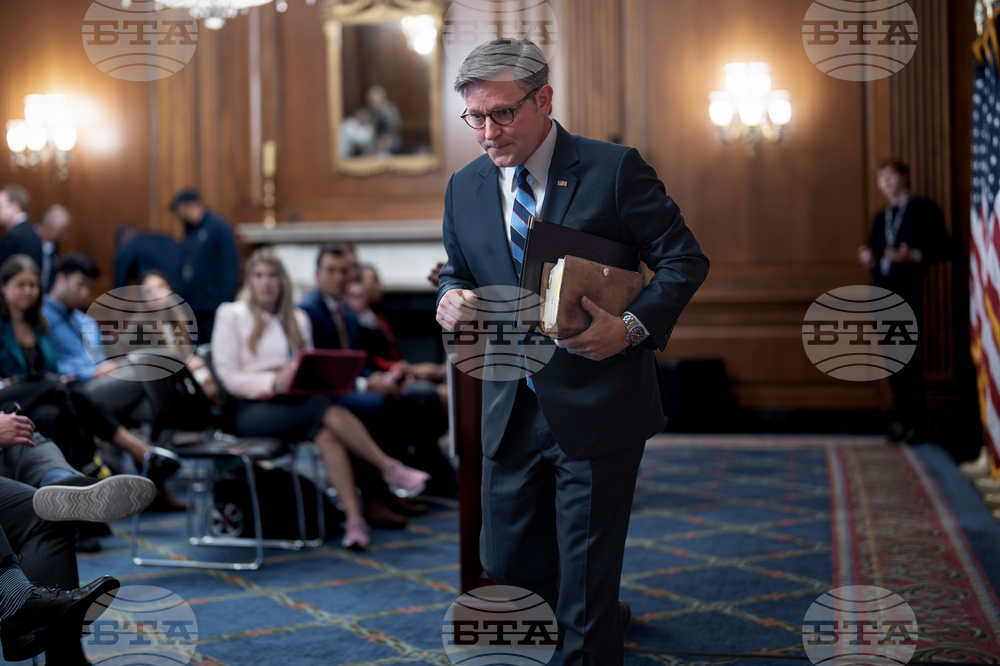 Speaker of the House Mike Johnson, R-La., carries his personal Bible and notes as he departs a news conference on the seventh day of the government shutdown, at the Capitol in Washington, Tuesday, Oct. 7, 2025. (AP Photo/J. Scott Applewhite)
