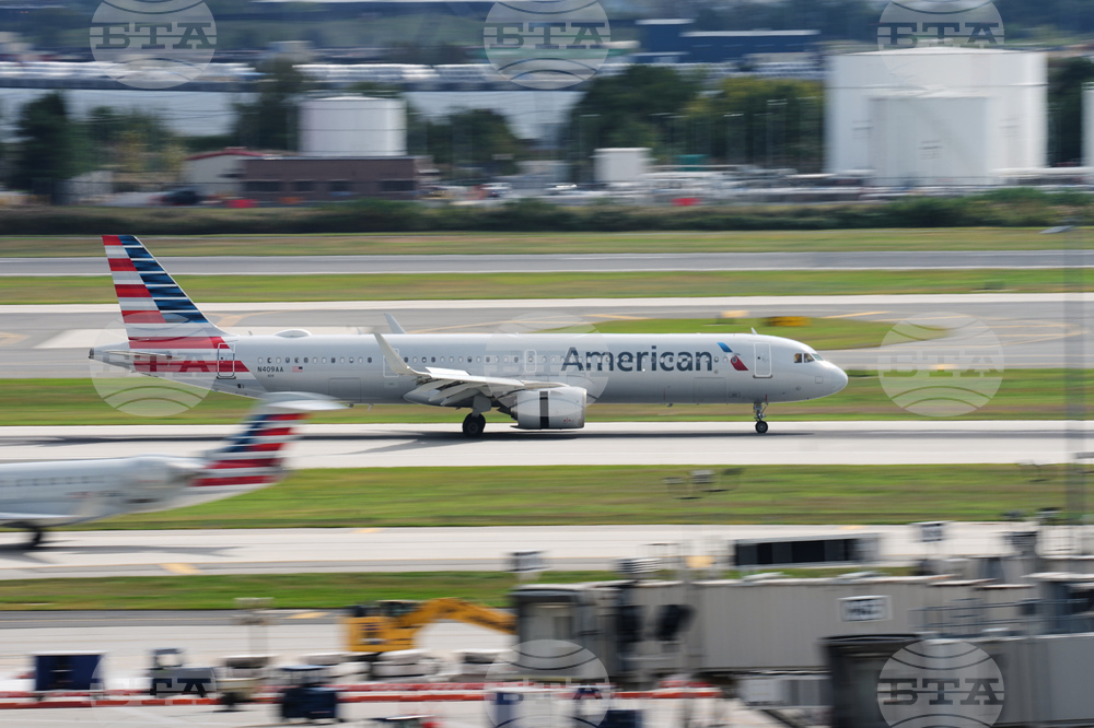 An aircraft taxis at Philadelphia International Airport in Philadelphia, Tuesday, Oct. 7, 2025. (AP Photo/Matt Rourke)