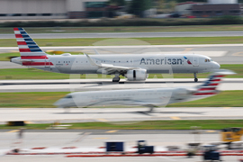An aircraft lands at Philadelphia International Airport in Philadelphia, Tuesday, Oct. 7, 2025. (AP Photo/Matt Rourke)