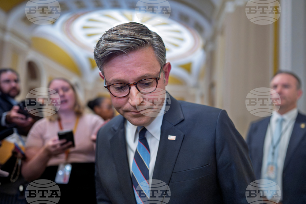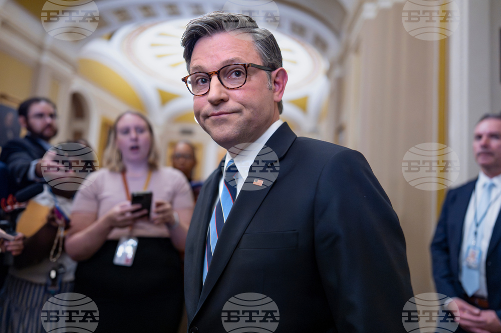 House Speaker Mike Johnson, R-La., speaks to reporters on Capitol Hill in Washington, Tuesday, Oct. 7, 2025. (AP Photo/Allison Robbert)
