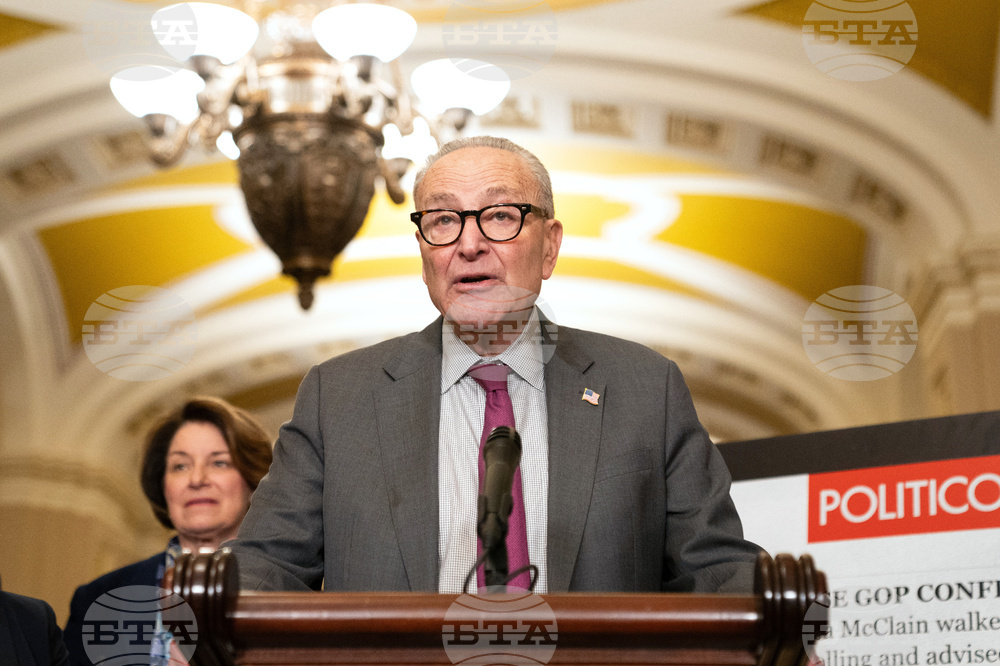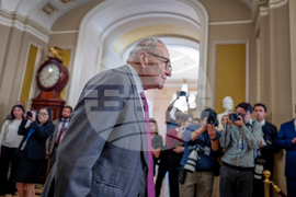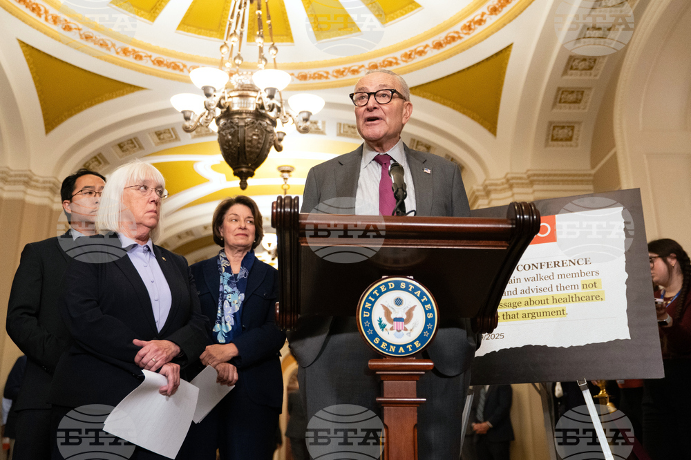 Senate Minority Leader Chuck Schumer, D-N.Y., speaks to reporters following the weekly Senate policy luncheon on Capitol Hill in Washington, Tuesday, Oct. 7, 2025. (AP Photo/Allison Robbert)