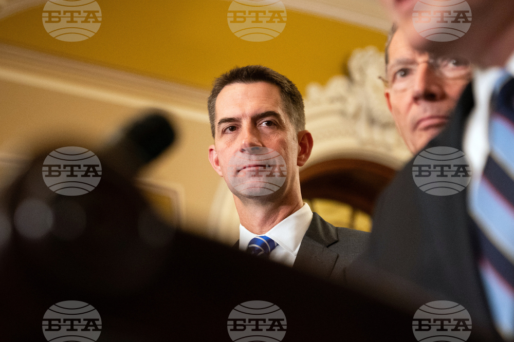 Sen. Tom Cotton, R-Ark., speaks to reporters following the weekly Senate luncheon on Capitol Hill in Washington, Tuesday, Oct. 7, 2025. (AP Photo/Allison Robbert)