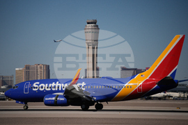 Planes land and take off at Harry Reid International Airport, Tuesday, Oct. 7, 2025, in Las Vegas. (AP Photo/John Locher)