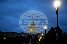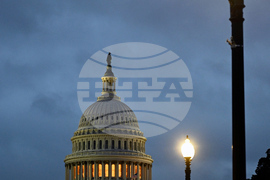 Early morning cloudy skies over the U.S. Capitol during the 8th day of the government shutdown on Wednesday, Oct. 8, 2025, in Washington. (AP Photo/John McDonnell)