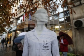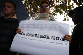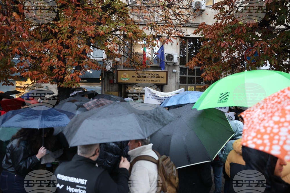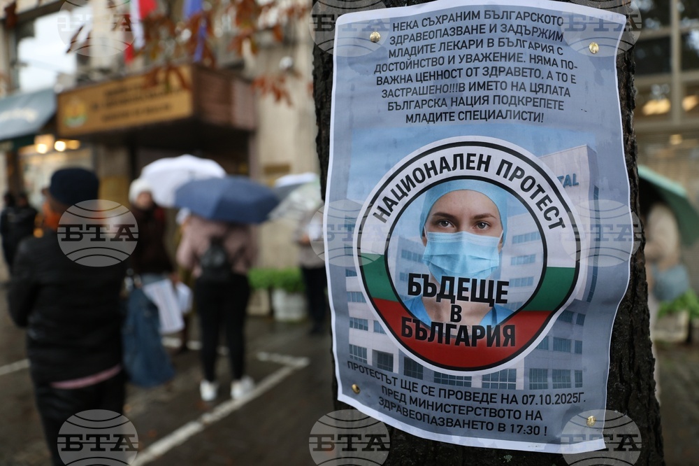 София (7 октомври 2025) Пред сградата на Министерство на здравеопазването се провежда протест на млади лекари.
