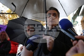 София (7 октомври 2025) Пред сградата на Министерство на здравеопазването се провежда протест на млади лекари. На снимката: председателят на „Продължаваме промяната" Асен Василев.