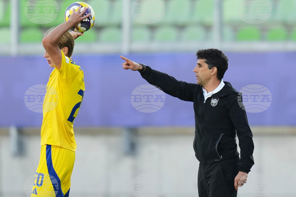 Ukraine's coach Dmytro Mykhailenko reacts during a FIFA U-20 World Cup round of sixteen soccer match against Spain at Elias Figueroa Brander Stadium in Valparaiso, Chile, Tuesday, Oct. 7, 2025. (AP Photo/Andre Penner)