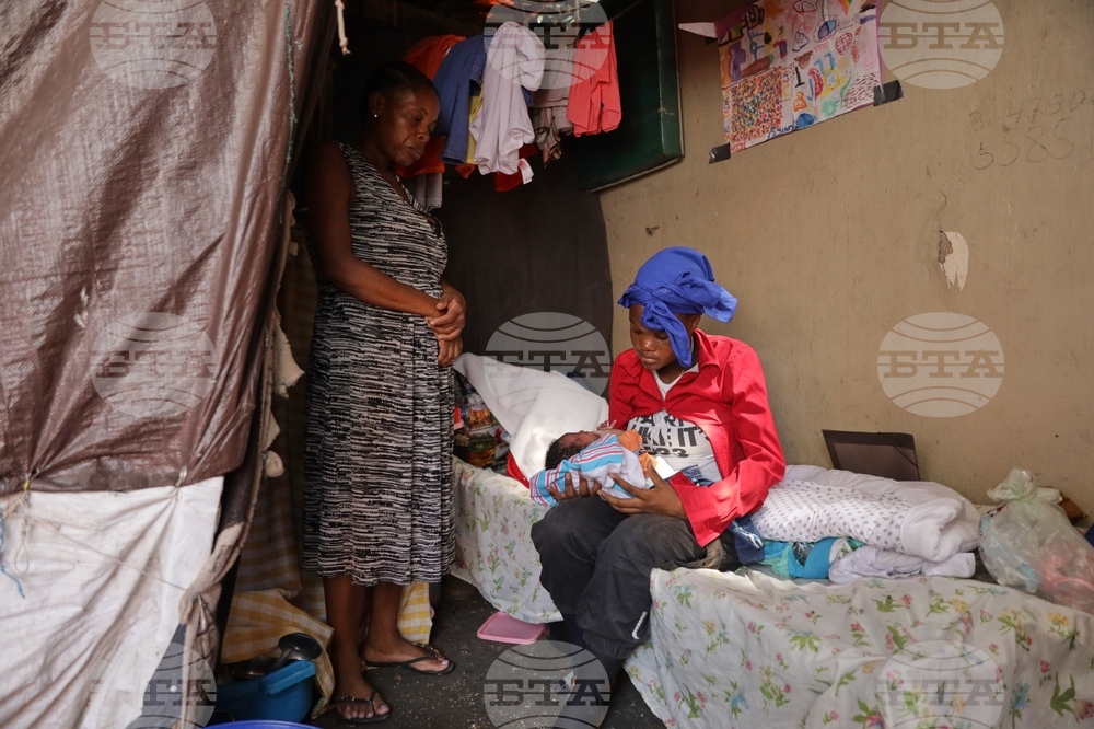 Desire Allia, 15, holds her 5-day-old baby while staying with her mother at a shelter for families displaced by gang violence in Port-au-Prince, Haiti, Tuesday, Oct. 7, 2025. (AP Photo/Patrice Noel)