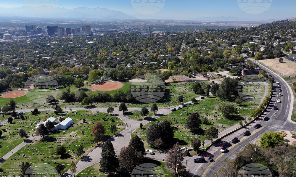 A hearse carrying President Russell M. Nelson, the late prophet-president of The Church of Jesus Christ of Latter-day Saints, arrives at the Salt Lake City Cemetery in Salt Lake City on Tuesday, Oct. 7, 2025. (Kristin Murphy/The Deseret News via AP)