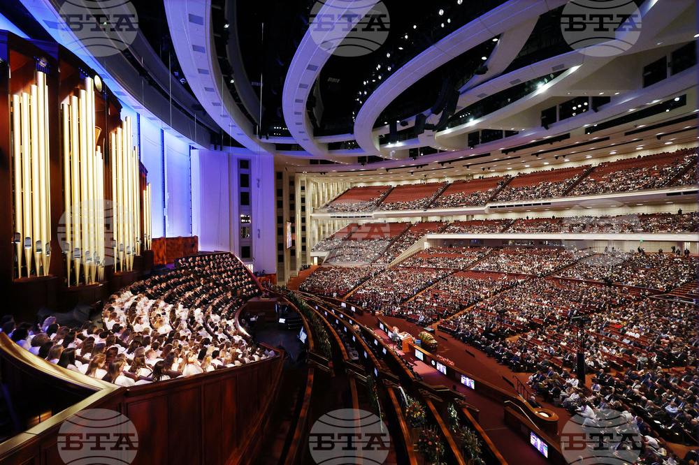 Funeral services take place in the Conference Center for President Russell M. Nelson, the 17th president of The Church of Jesus Christ of Latter-day Saints, in Salt Lake City on Oct. 7, 2025. (Scott G Winterton/The Deseret News via AP)