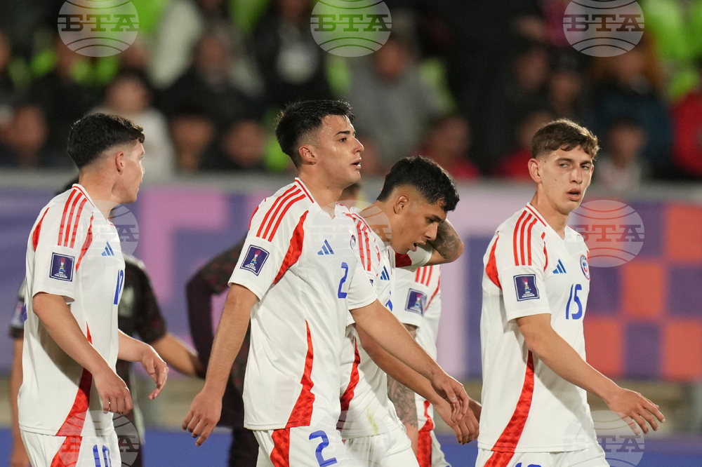 Chile's players react after Mexico's Hugo Camberos scored his side's 4th goal during a FIFA U-20 World Cup round of sixteen soccer match at Elias Figueroa Brander Stadium in Valparaiso, Chile, Tuesday, Oct. 7, 2025. (AP Photo/Andre Penner)
