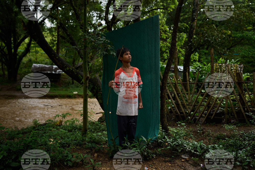 Twelve-year-old Mohama poses for a portrait with his fishing rod along the river that winds past his refugee camp in the Tak province of Thailand, Wednesday, Aug. 27, 2025. (AP Photo/Bram Janssen)