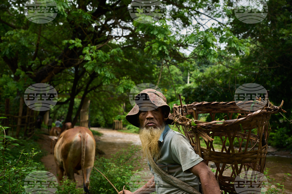 A man herds his cows near the Mae La refugee camp in the Tak province of Thailand, Wednesday, Aug. 27, 2025. (AP Photo/Bram Janssen)