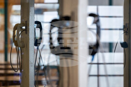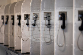 Visitation phone lines inside secure booths are seen at the Allan B. Polunsky Unit prison in Livingston, Texas, Wednesday, Oct. 1, 2025. (AP Photo/Annie Mulligan)
