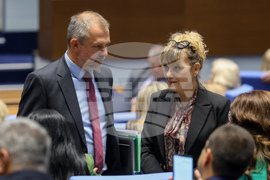 София (8 октомври 2025) Парламентът провежда редовно заседание в сградата на Народното събрание. На снимката (от ляво надясно): народният представител от „ДПС - Ново начало” Иво Цанев и народният представител от „Има такъв народ” Христинка Иванова.