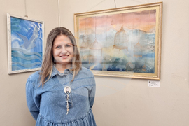 Плевен (8 октомври 2025) Художничката Ралица Енчева (на снимката) подреди самостоятелна изложба в арт център - 2 „Къща на художниците” в Плевен. Авторката представя живописни картини, творби от стъкло и керамика. Експозицията може да бъде разгледана до 18 октомври.